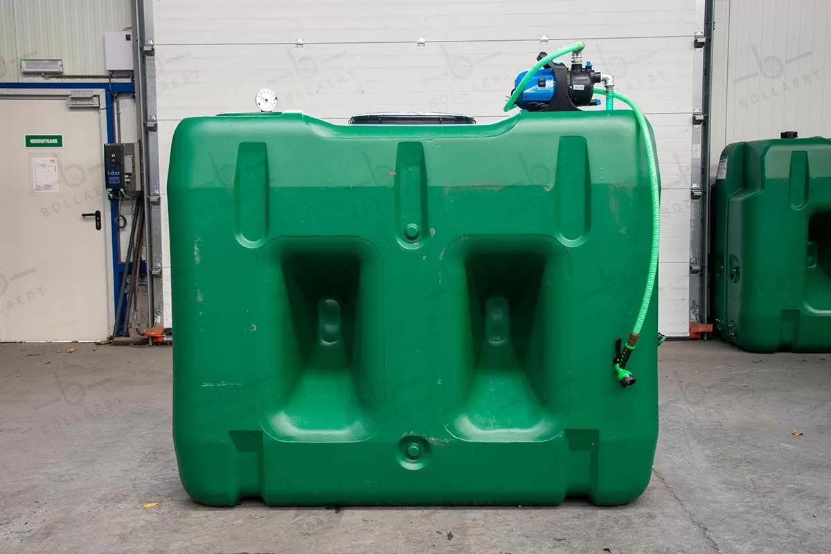 De tanks zijn bestand tegen UV-stralen. Deze tank met tuinpomp kan probleemloos buiten worden geplaatst. De pomp dient te worden beschermd tegen regen. Bij vriestemperaturen is het aangeraden om het water uit de pomp te laten lopen (dit kan eenvoudig via een schroefdop).