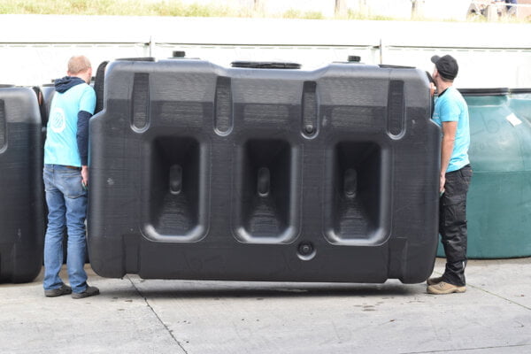 De plaatsing kan gemakkelijk worden uitgevoerd zonder machinale hulp en vereist enkel een laag gestabiliseerd zand onder en rondom de tank.